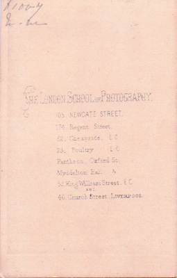 Mr. A. Ratcliffe, Photographer, Gallon & Co. 443 West Strand, London - photo courtesy of Marion Gower