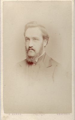 "A GENTLEMAN" From my collection c. late 1880's Possibly James W. Cowfoot. No. 17475 Negatives Kept, Copies can always be had Established 19 years Enlargements beautifully finished from any portrait Samuel Barns, Photographer, 100 High Street, Ashford