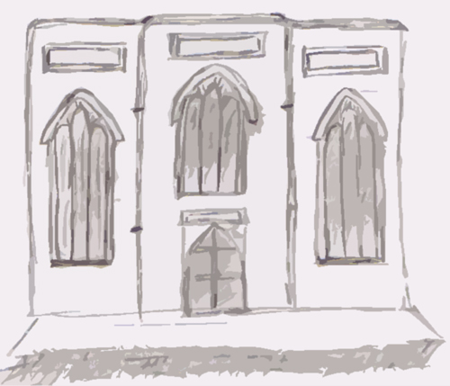 My sketch of the remodelled St. Mary Bredman Church, High street (the newly rebuilt church c. 1882) "So-called from the bread market formerly held close by. A modern church on the site of an older one. This church, now pronounced unsafe, is shortly to be demolished, a fate, perhaps not undeserved." Handbook for Canterbury, British Association for the Advancement of Science Dover Meeting 1899
