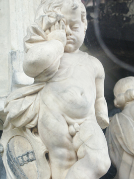 But the most ostentatious feature of the church is the family monument of the Whitfields, compared with which everything in the church, whether for God's use or man's convenience, sinks into insignificance. It stands in meretricious display in the south aisle with its four punchy cupids or angels and pyramid over which is a huge canopy held up by Corinthian columns. Felix Summerly's Handbook for the City of Canterbury 1843 |