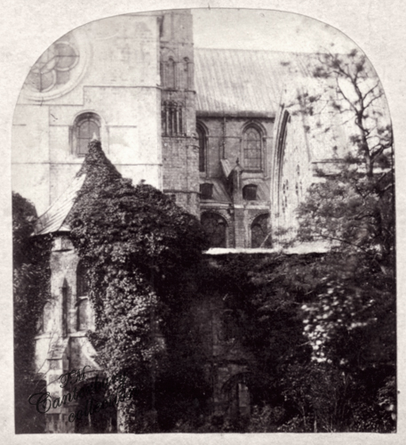 Western Towers and Ruins, Canterbury Cathedral c. 1860's & Now (West wall of the Necessarium)