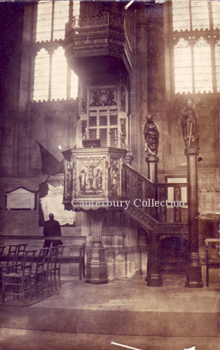 "The Treasury contains the ancient charters, a number of them Saxon and some prior to the Norman accession, one being a charter by King Ethelbert, written by St. Dunstan." The north-west or Arundel Tower was originally built by Lanfranc, whose work remained until 1834, when the tower, having fallen into a dilapidated condition, was rebuilt by the Dean and Chapter,under the superintendence of Mr. G. Austin, at the cost of £25,000, as the exact counterpart of the south-western or Chichele Tower, a leaden spire, 100 feet in height, having been previously removed in August 1705. D A meeting of the Dean Payne-Smith Memorial Committee was held on the 2nd, when it was resolved that Mr. Bodley, the eminent architect, be asked to prepare designs for a pulpit in the nave of the Cathedral, the cost not to exceed £650. January 1896